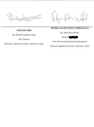 Identification of SPACEJX CORP and WEHRLI LEGACY INOVA SIMPLES (I.S.);